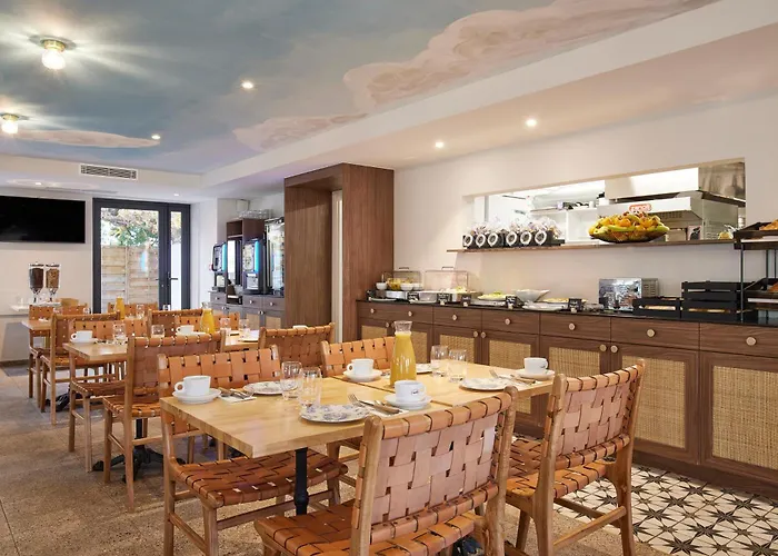 L'Hôtel Khla Nice, situé à proximité de la gare ferroviaire Nice-Ville, propose 68 chambres modernes avec une climatisation. Chaque chambre est équipée d'une télévision à écran plat, et un petit-déjeuner buffet est servi tous les matins. La réception ouverte 24h/24 vous assure un service de qualité tout au long de votre séjour. La Promenade des Anglais et le célèbre Cours Saleya sont à quelques pas. Les connexions aux transports publics facilitent vos déplacements.